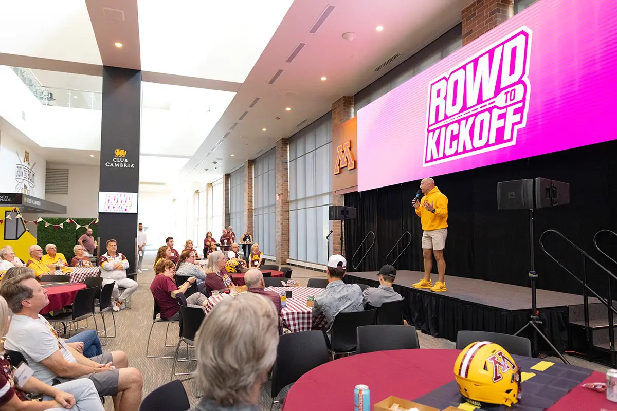 From the opportunity for Elite Fund members to celebrate National Signing Day with the Gopher Football staff, to Friends of the Barn and Legacy Fund members participating in outings around the Twin Cities with Coach Medved and Coach Plitzuweit, to connecting scholarship donors with their student-athlete recipients at the annual Golden Gopher Fund Scholarship Banquet — our staff and head coaches ensure that Golden Gopher Fund supporters remain connected and engaged throughout the year.