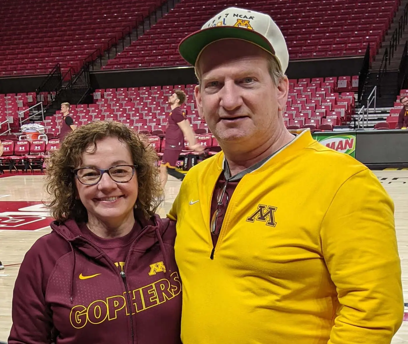 Daniel and Jamie proudly sport the maroon and gold colors at every NCAA tournament game location they travel to and especially enjoy when they can watch their favorite team in action. Even when they moved to Boston during the 2019-20 season they dutifully flew home and did not miss a single game.