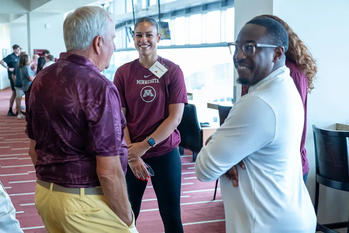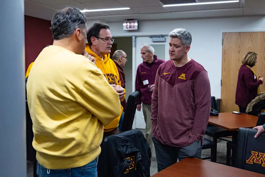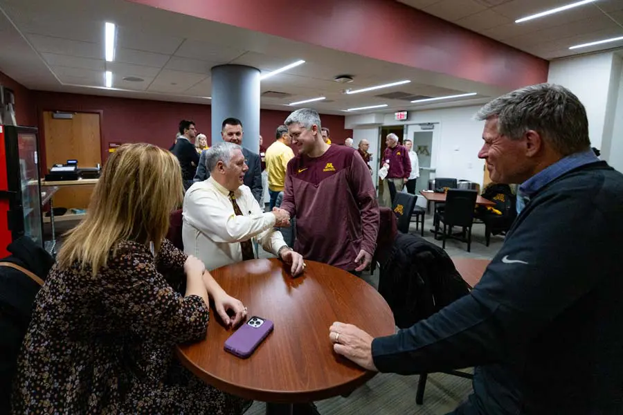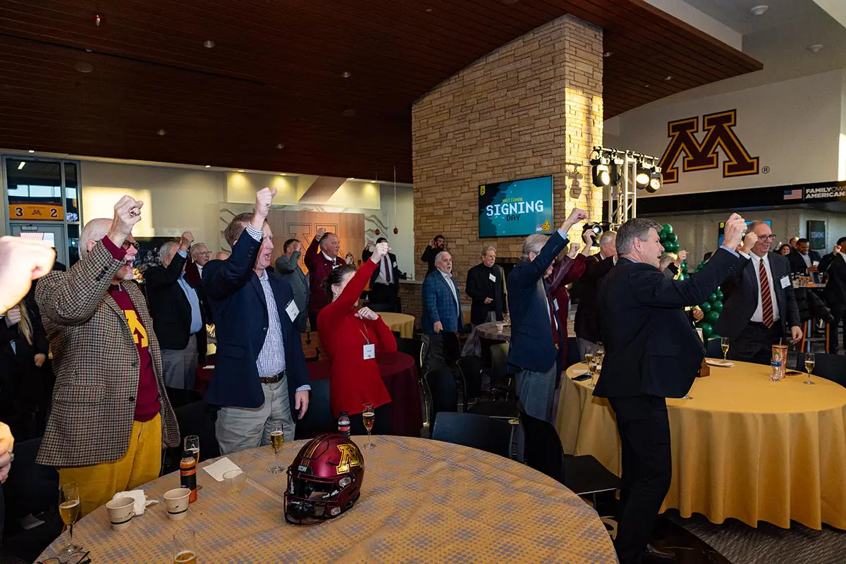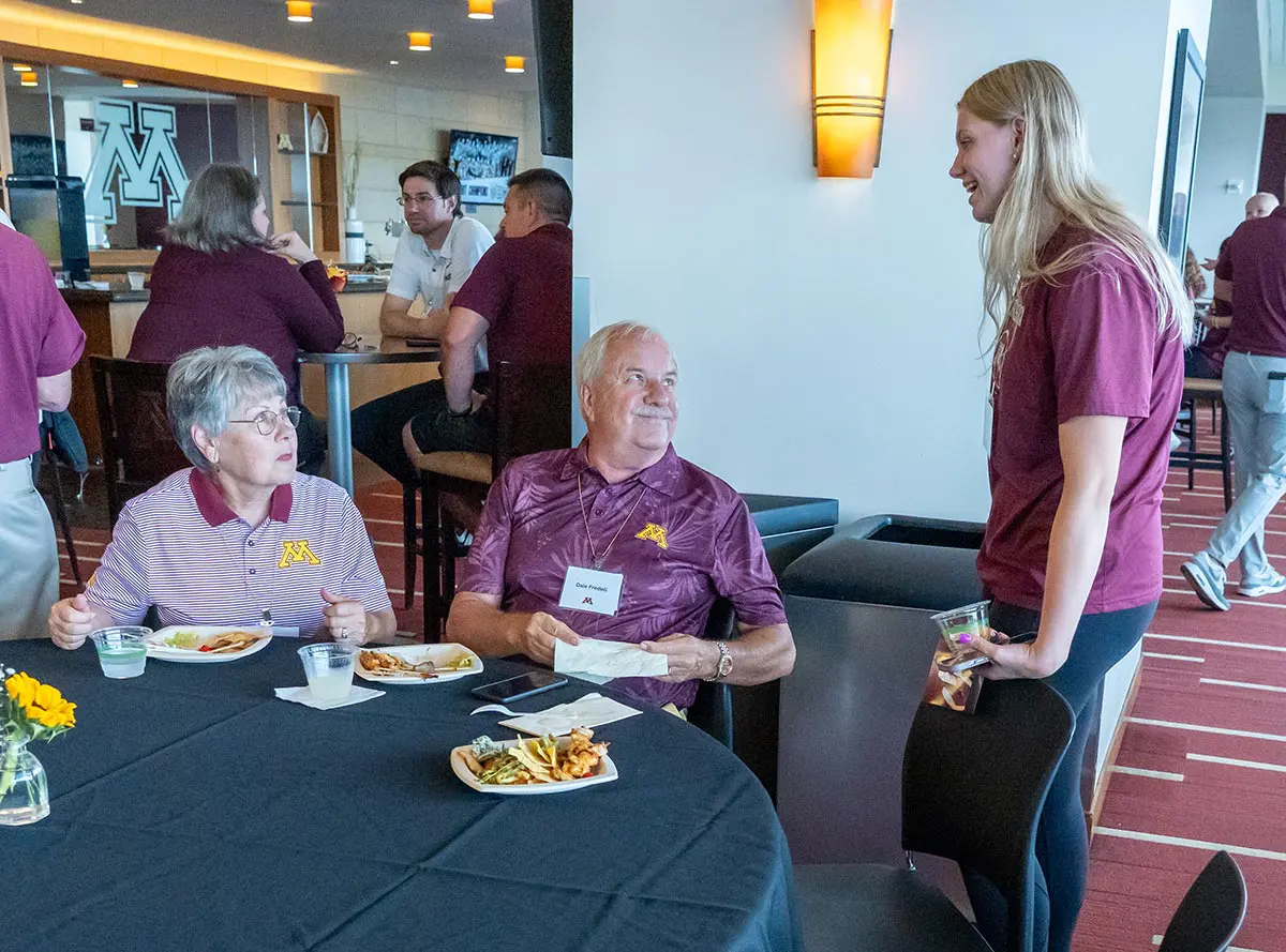 From the opportunity for Elite Fund members to celebrate National Signing Day with the Gopher Football staff, to Friends of the Barn and Legacy Fund members participating in outings around the Twin Cities with Coach Medved and Coach Plitzuweit, to connecting scholarship donors with their student-athlete recipients at the annual Golden Gopher Fund Scholarship Banquet — our staff and head coaches ensure that Golden Gopher Fund supporters remain connected and engaged throughout the year.