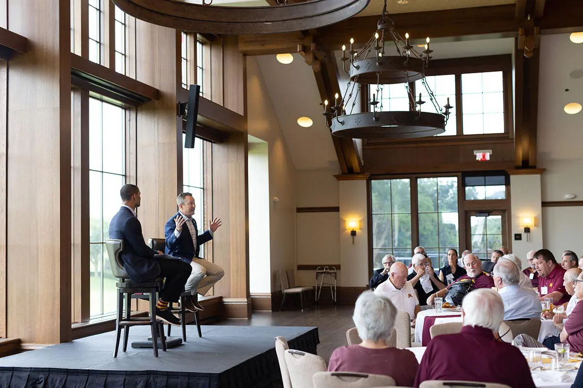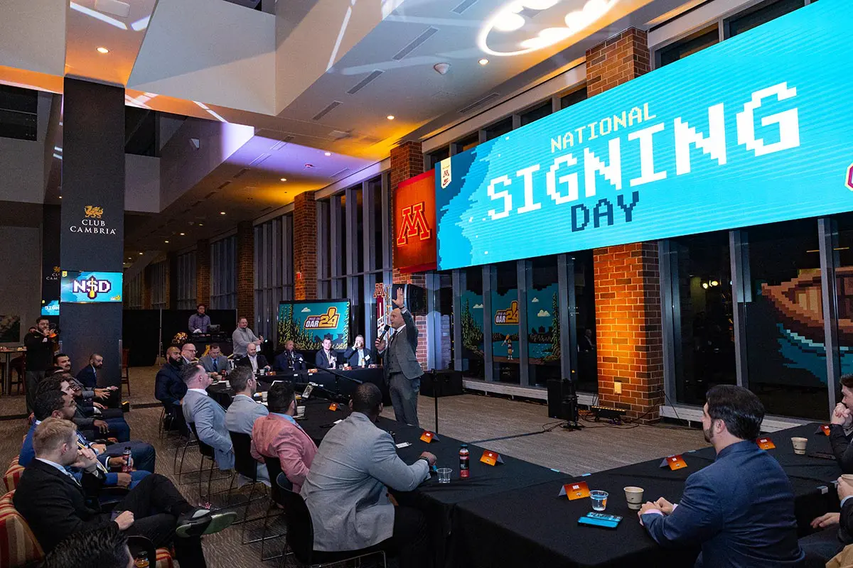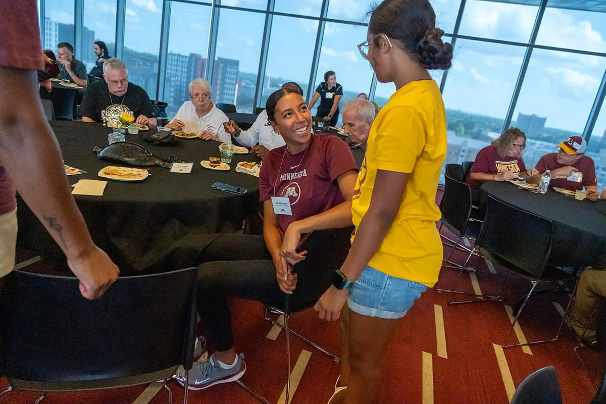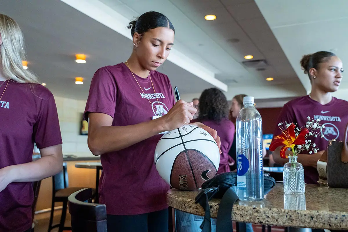 From the opportunity for Elite Fund members to celebrate National Signing Day with the Gopher Football staff, to Friends of the Barn and Legacy Fund members participating in outings around the Twin Cities with Coach Medved and Coach Plitzuweit, to connecting scholarship donors with their student-athlete recipients at the annual Golden Gopher Fund Scholarship Banquet — our staff and head coaches ensure that Golden Gopher Fund supporters remain connected and engaged throughout the year.